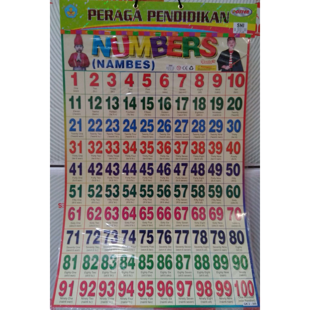 Terdapat nombor asas dari 1 hingga 100, dengan bacaan dalam bahasa korea.